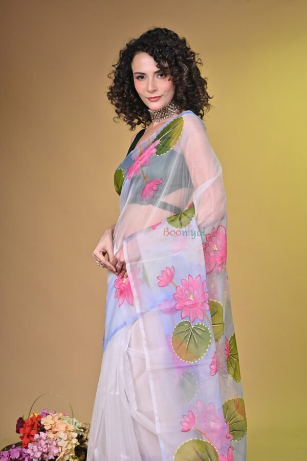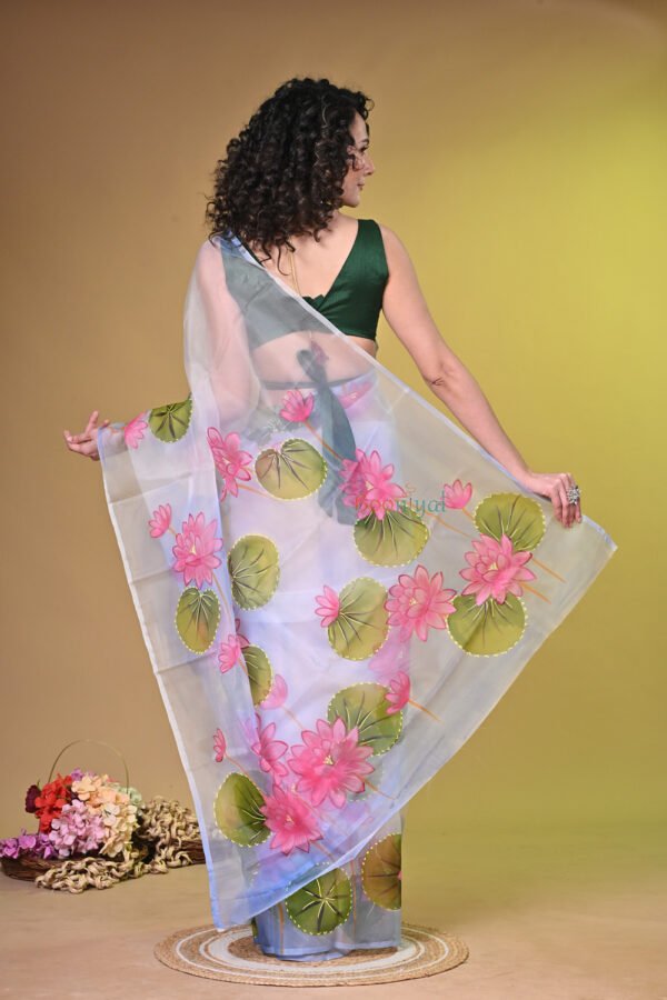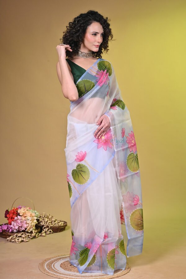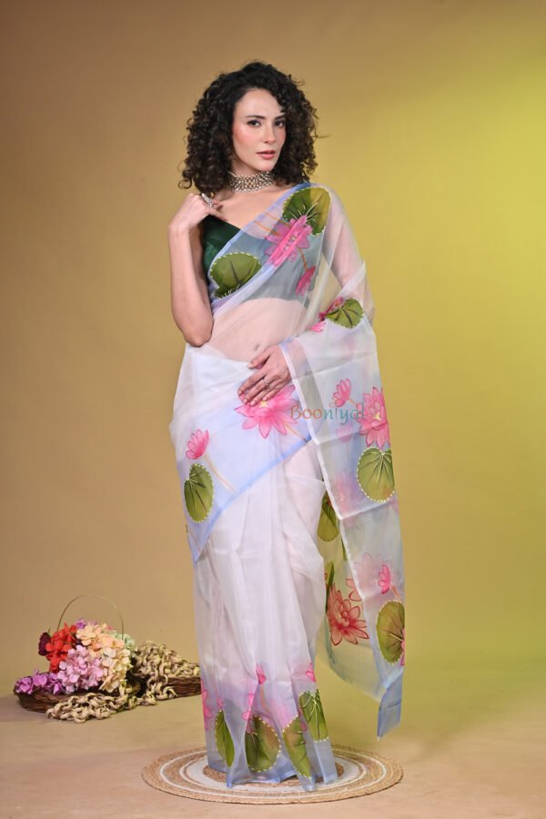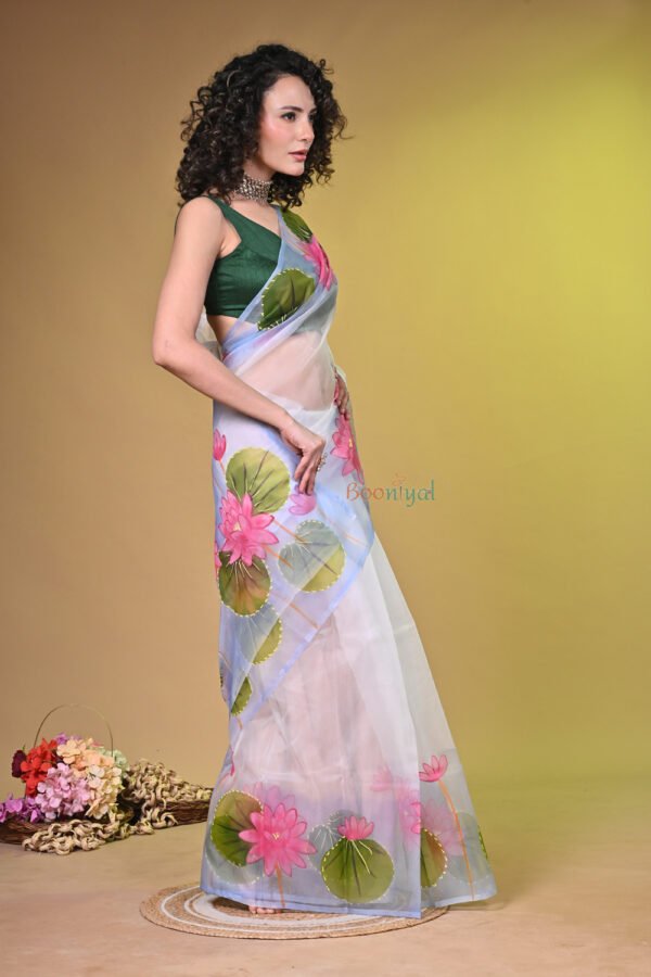Handpainted Organza Saree – Lotus Bloom by Booniyal OG002