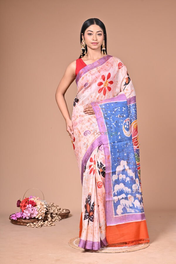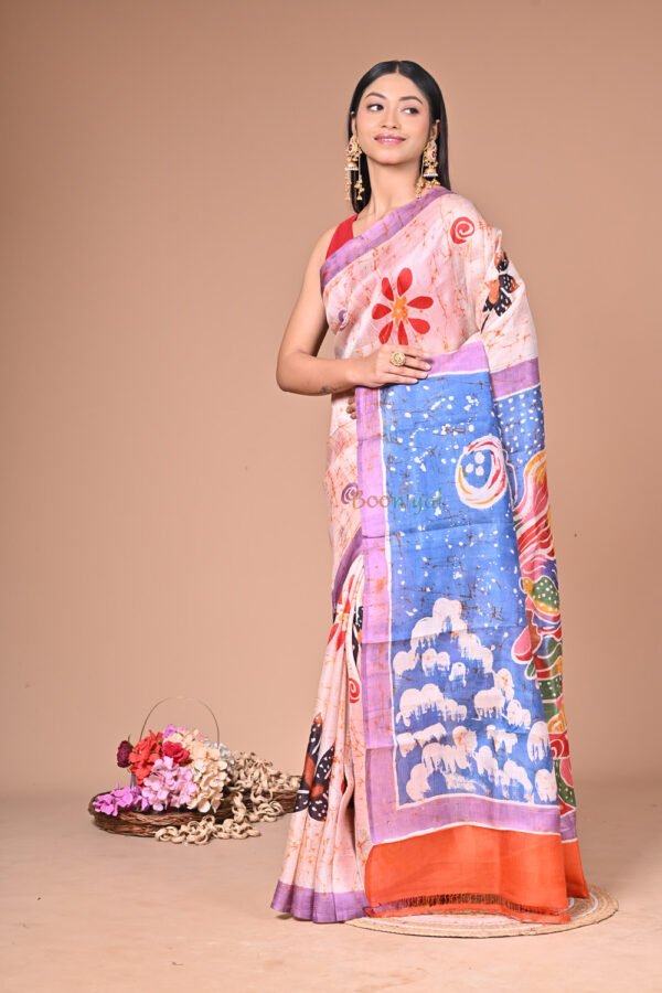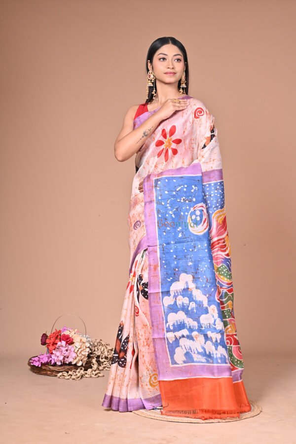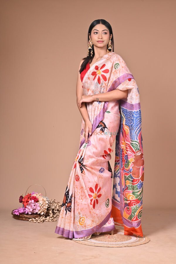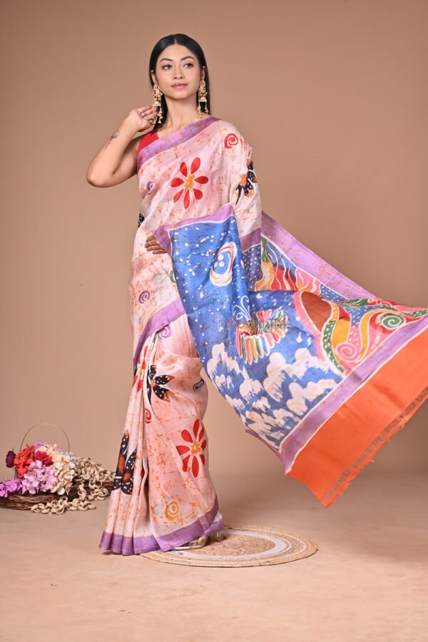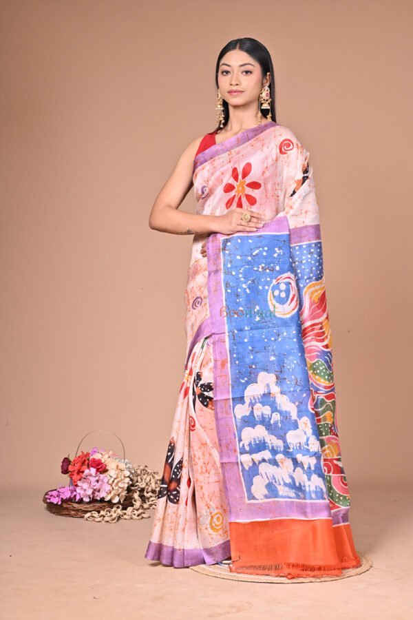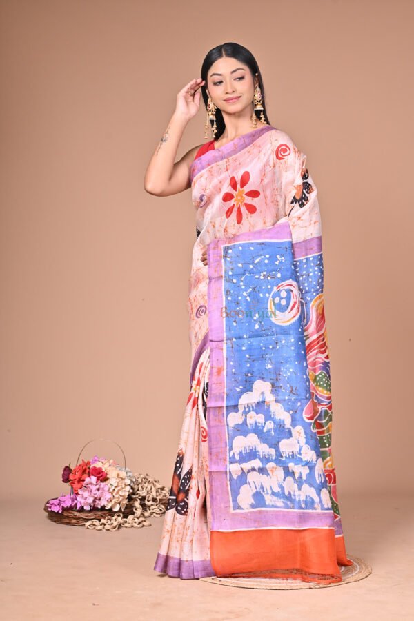 Batik Handpainted Saree on Murshidabad Silk BTK001