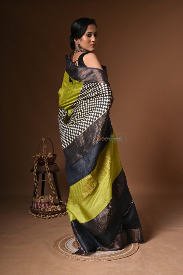 Discover timeless elegance with Booniyal Boutique’s Hand Block Print Bishnupuri Silk Saree, a masterpiece of heritage craftsmanship and modern luxury.