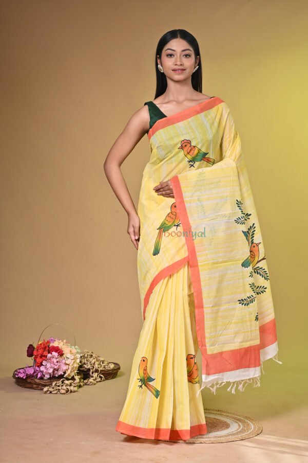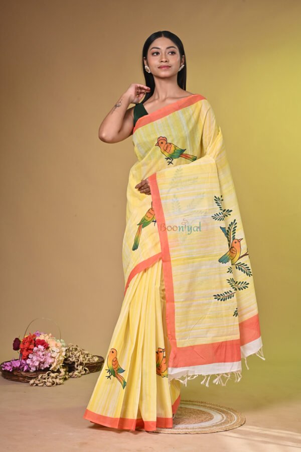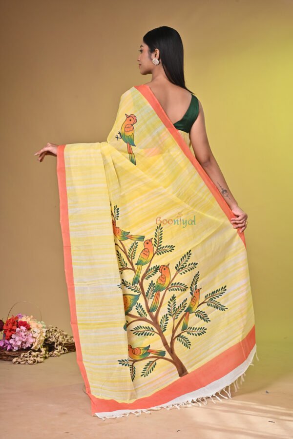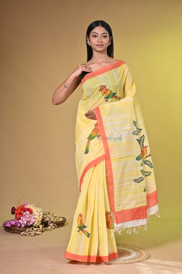 - Design: Unique hand-painted artwork, making every saree one-of-a-kind