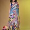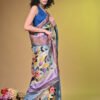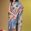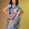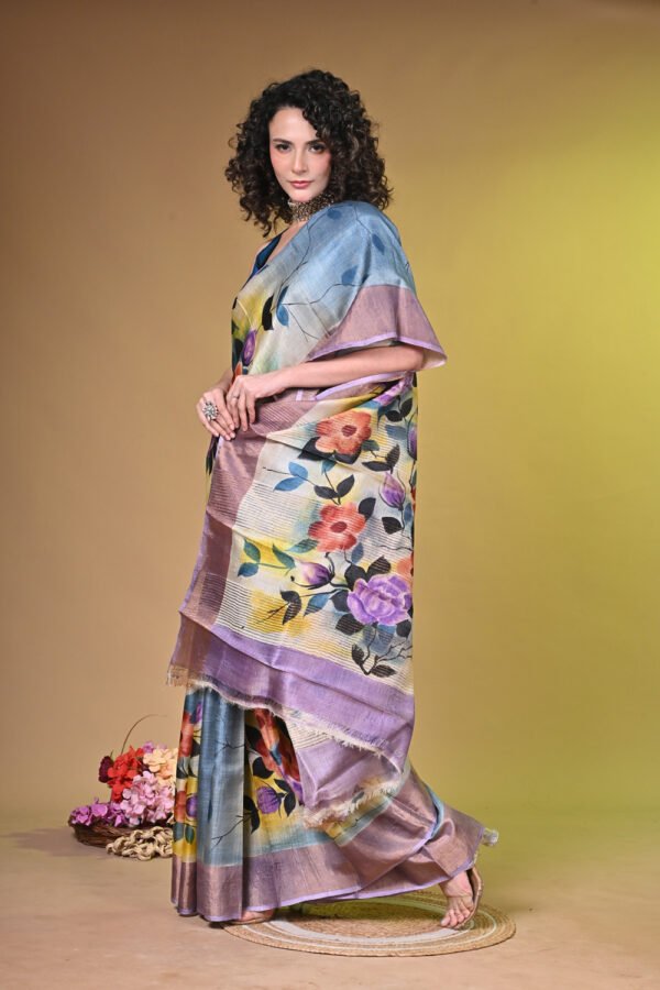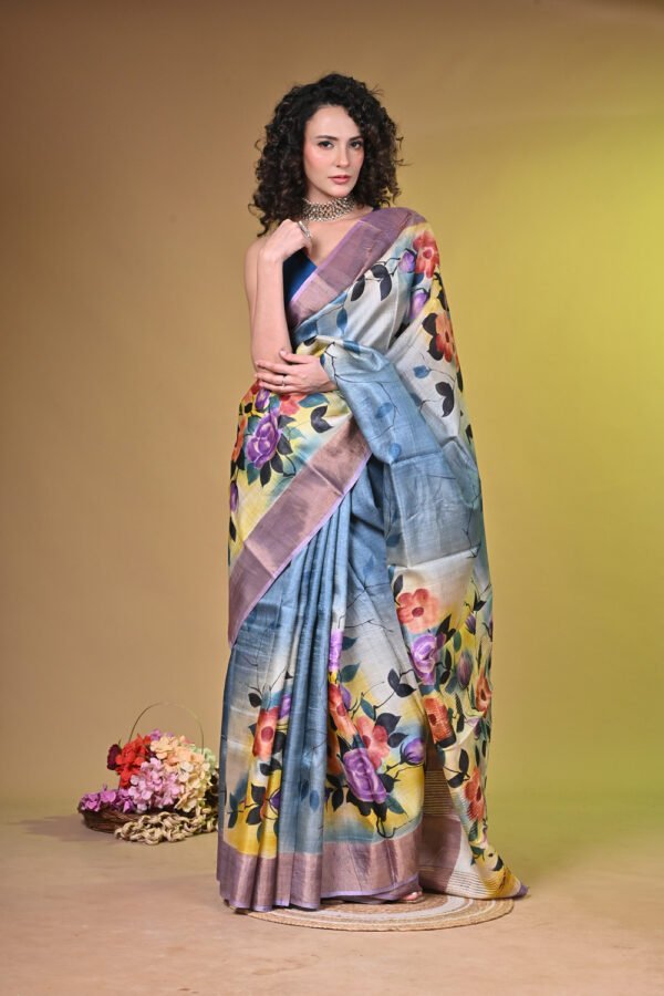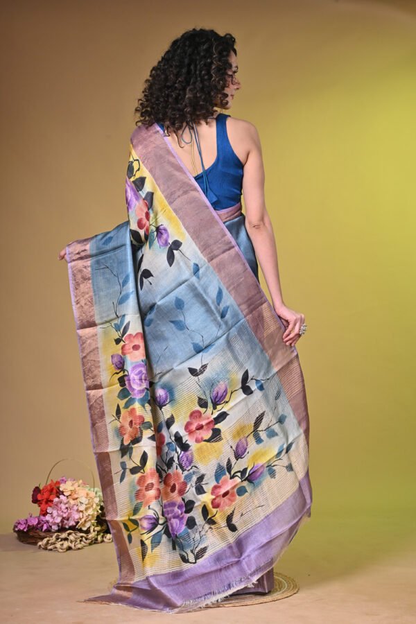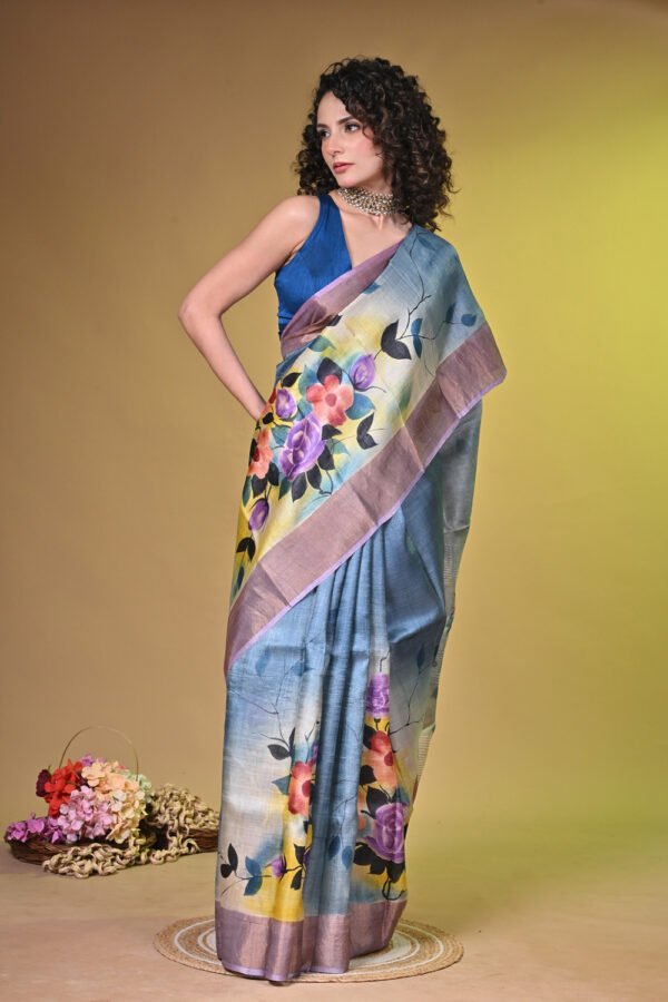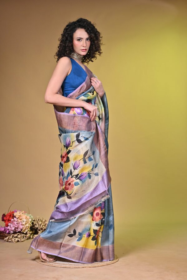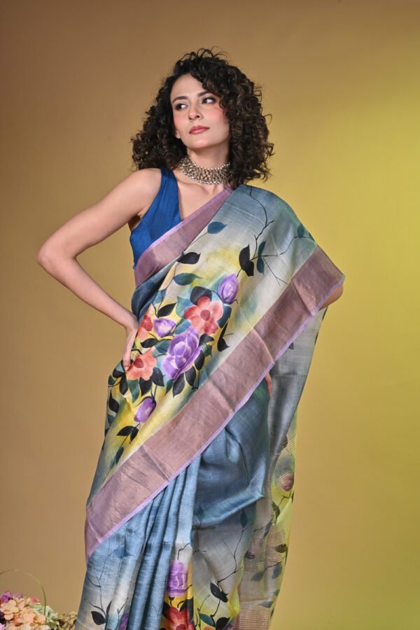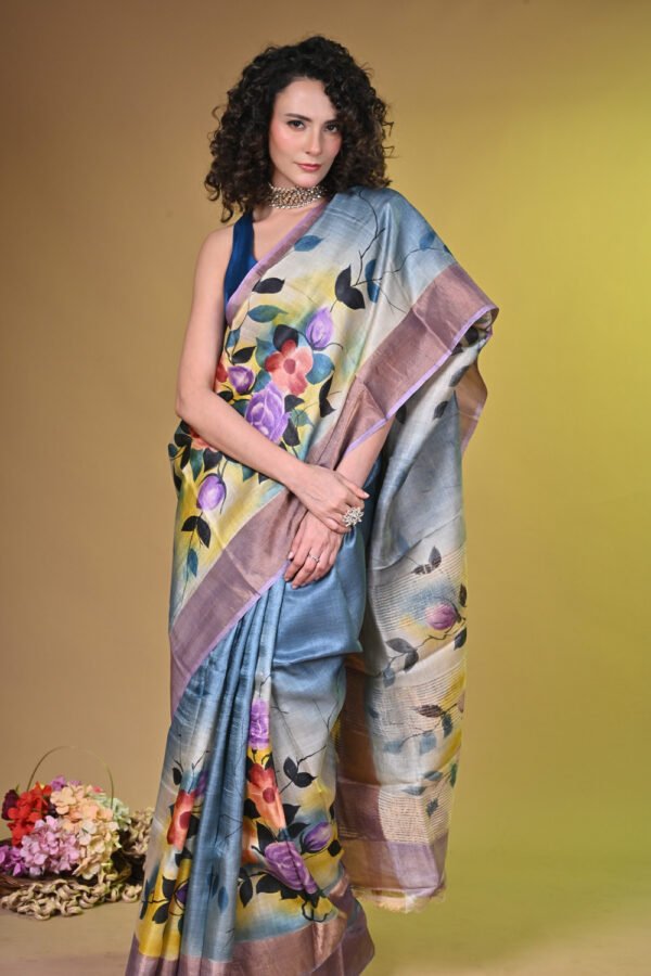 Premium Handpainted Floral body Bishnupuri Tussar Saree with Zari Border