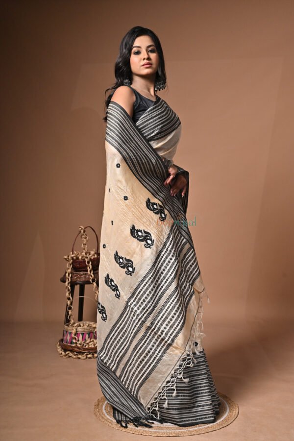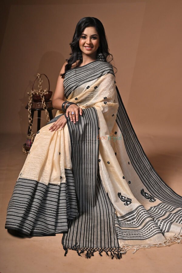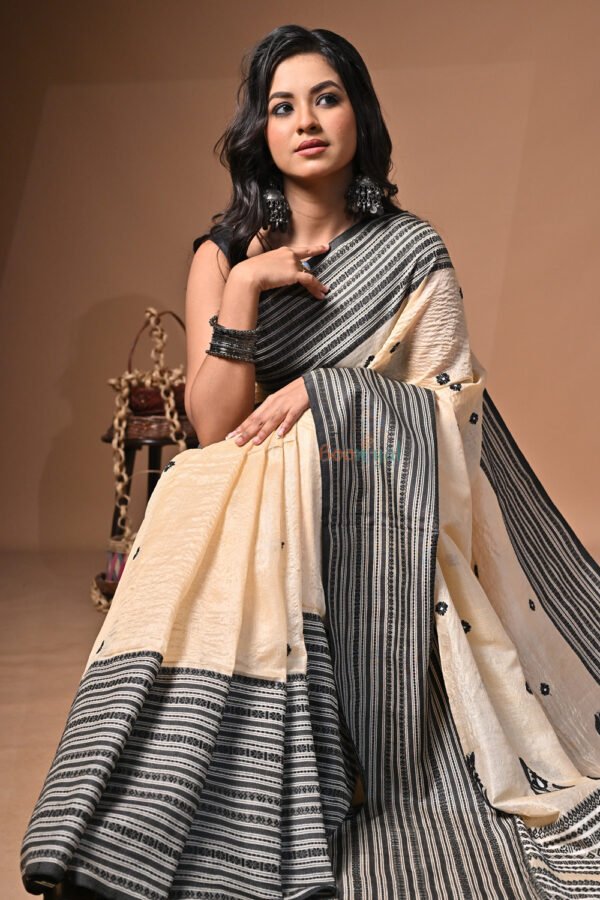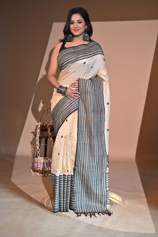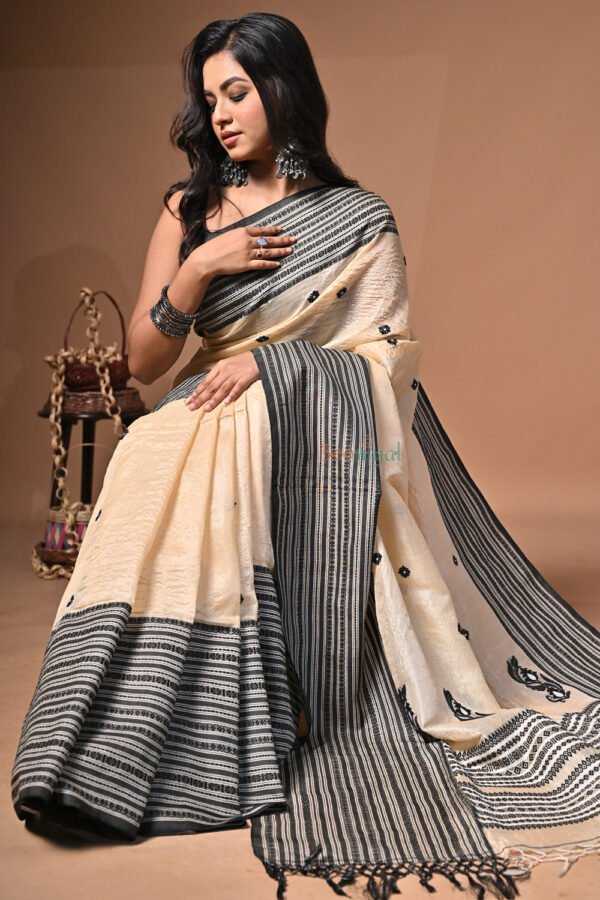 - A collector’s piece that celebrates Bengal’s weaving traditions.