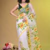 The Details A sleek, vibrant yellow piping runs along the border, framing the artwork and adding a structured finish to the airy fabric. Whether you are attending a brunch, a haldi ceremony, or a sophisticated evening gathering, this saree ensures you carry a piece of sunshine wherever you go.