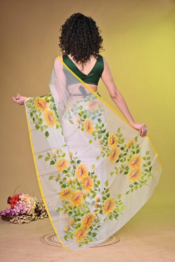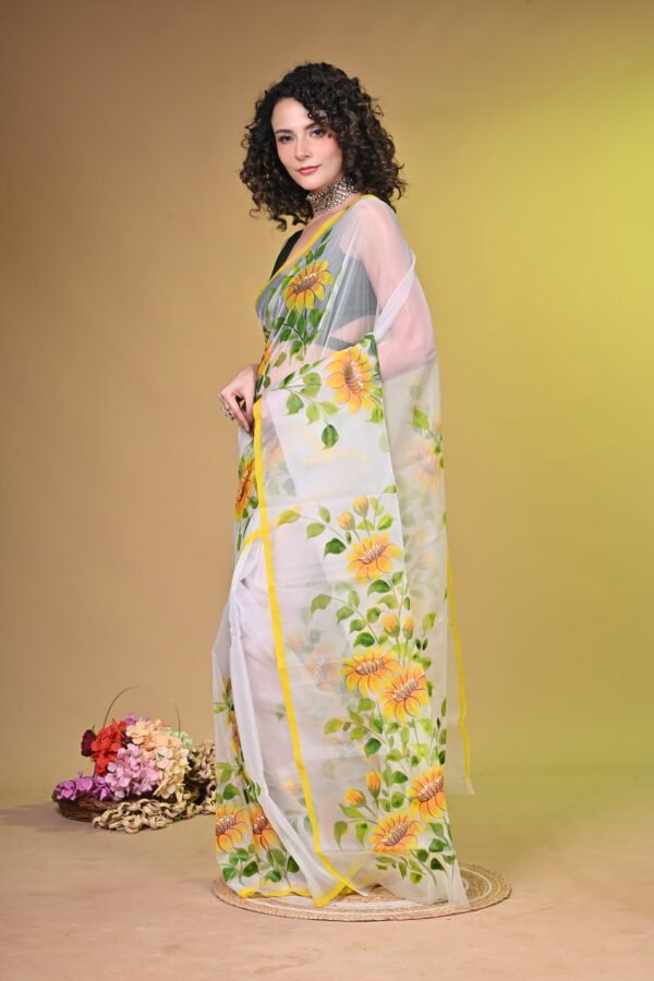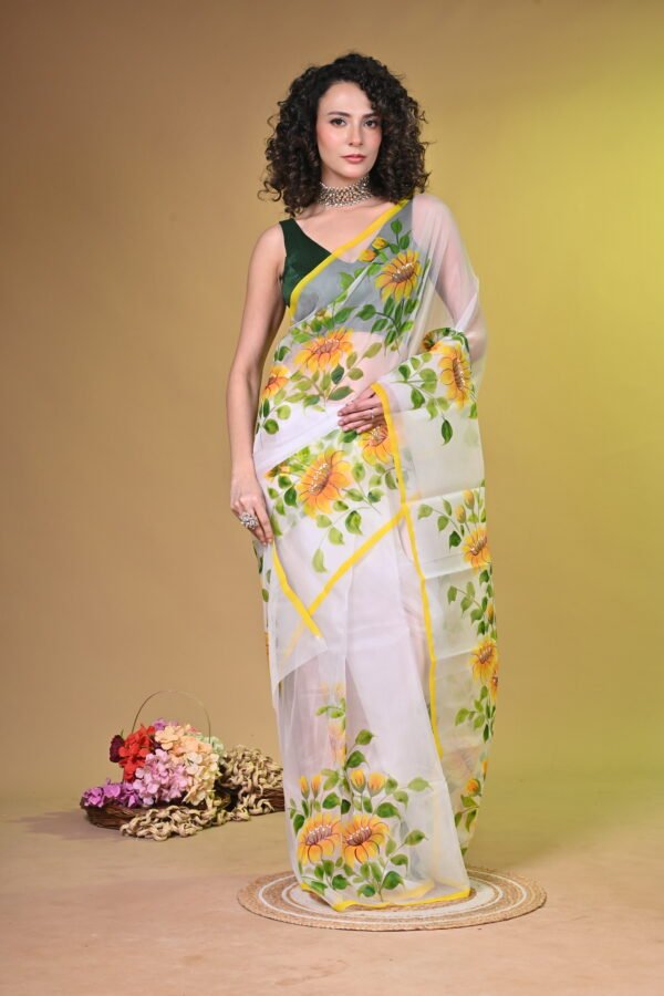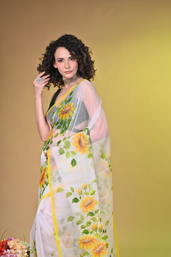 Sunshine Bloom: Handpainted Sunflower Organza Saree OG001